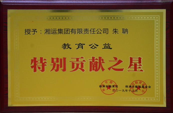 近幾年來,朱聃董事長兼總經理積極投身教育公益事業,發揚愛心奉獻精神和扶貧濟困的良好風尚,促進社會和諧的發展,引領企業樂善好施獻愛心,讓社會感受到湘運企業的大愛,獲得了株洲市教育界良好的口碑,也得到了株洲市領導的好評。